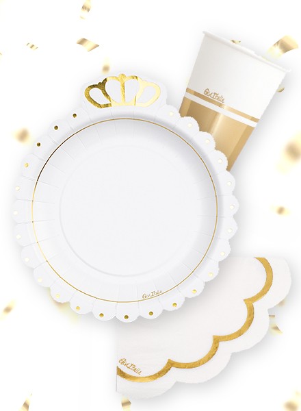 Crown è un piatto decorato con una graziosa corona da usare per festeggiare un evento importante e per sentirsi davvero speciali.