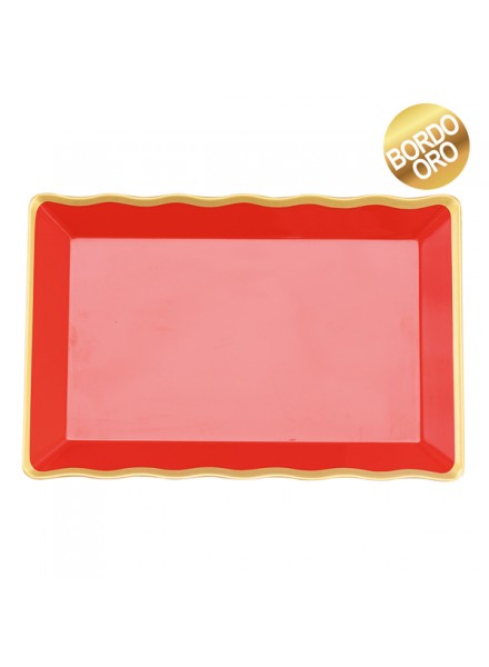 Vassoio in melamina rosso con bordo oro cm 20x30