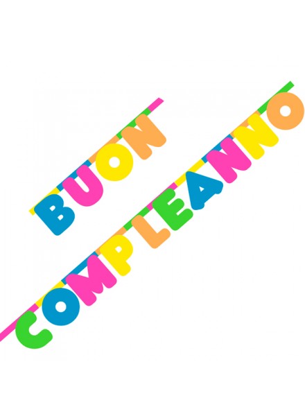 1 festone mt 3 in carta colori fluo. Il festone Buon compleanno con i suoi colori fluo si abbina perfettamente al coordinato Balloon Party.