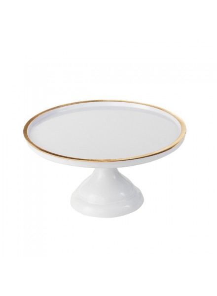 Alzata in melamina bianca con bordo oro diam cm 23, altezza cm 12. Indispensabile per completare la tavola, presentare torte e per le confettate