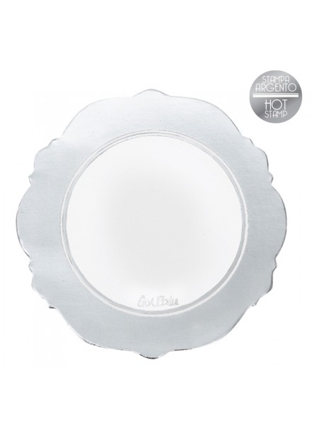6 sottobicchieri in carta da 10 cm con finitura silver metal, perfetti per allestire la tavola del tuo matrimonio o quella di un evento esclusivo ed elegante.