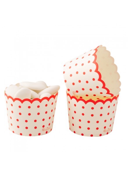 20 pirottini in carta cm 5x4.5 con stampa a pois rossi. I nostri pirottini decorati con pois rossi sono perfetti per offrire i confetti ai tuoi invitati.