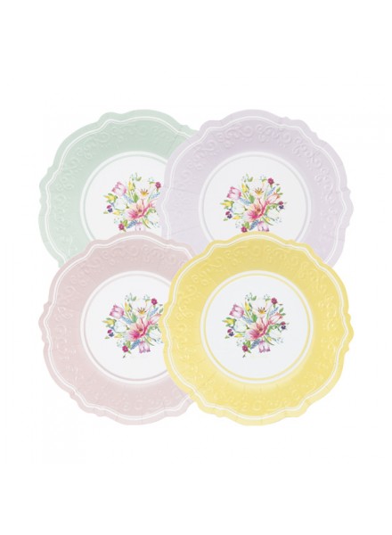 8 piatti in carta da 21 cm 4 ass. Il coordinato arricchito da un bouquet di fiori centrale ti conquistera' con il suo bordo colorato. In ogni confezione i piatti sono assortiti in 4 colori pastello. I piatti English Garden della linea Liberty rispettano l'ambiente: hanno ottenuto la Certificazione Aticelca e sono quindi riciclabili nella carta.