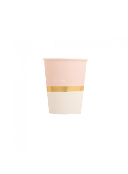 8 bicchieri e 8 cover in carta con decoro oro metal, 250 cc. I bicchieri Baby Chic rosa rispettano lâambiente: hanno ottenuto la Certificazione Aticelca e sono quindi riciclabili nella carta.