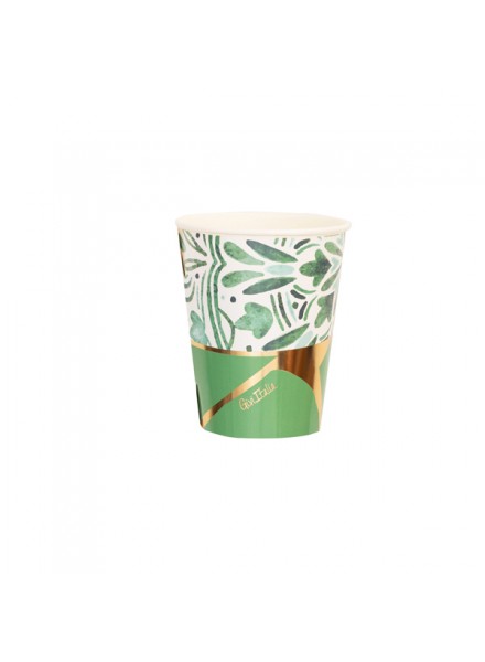 8 bicchieri in carta 250 cc con rivestimento. Il decoro Kintsugi si ispira all'arte giapponese che insegna la filosofia che anche da una crepa puo' nascere bellezza. I bicchieri rispettano l'ambiente: hanno ottenuto la Certificazione Aticelca e sono quindi riciclabili nella carta.