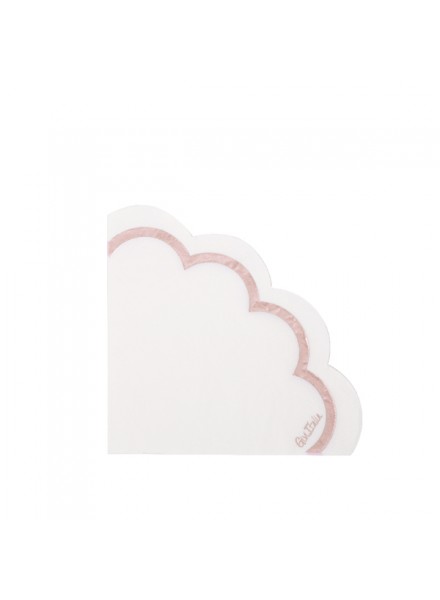 16 tovaglioli in carta Rose Gold Liberty con smerlo fiore sulle nuance del rose gold. Dimensioni 33x33 cm. I tovaglioli Rose Gold Liberty rispettano lâambiente: hanno ottenuto la Certificazione Aticelca e sono quindi riciclabili nella carta.