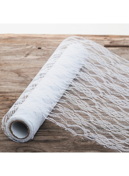 Runner tavola largo 30 cm e lungo 3 metri con elegante decoro floreale in pizzo bianco. Ideale per dare un tocco di romanticismo alla tua mise en place.