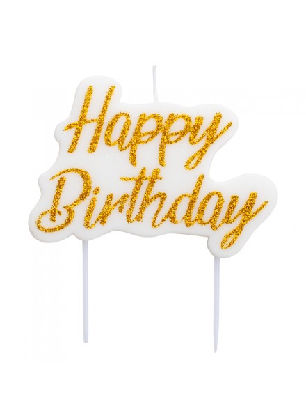 1 candelina Happy Birthday glitter oro cm 8x6. Questa candelina illuminera' la tua torta.
