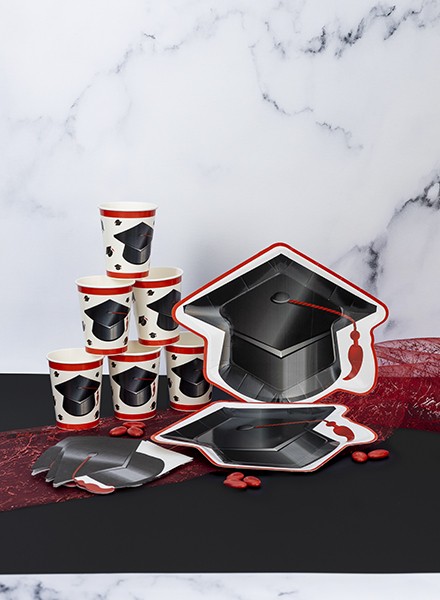 Il coordinato Graduation è perfetto per festeggiare il raggiungimento di questo importante traguardo. Inoltre rispetta l'ambiente: ha ottenuto la Certificazione Aticelca ed e' quindi riciclabile nella carta. Il pack comprende una confezione di piatti, bicchieri e tovaglioli.