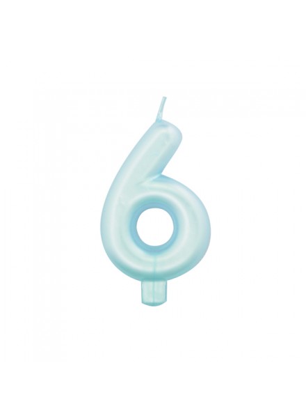 Candelina numero sei azzurro perlato con base, altezza 9 cm. Candelina compleanno perfetta per festeggiare non solo i più piccoli, ma anche gli adulti.