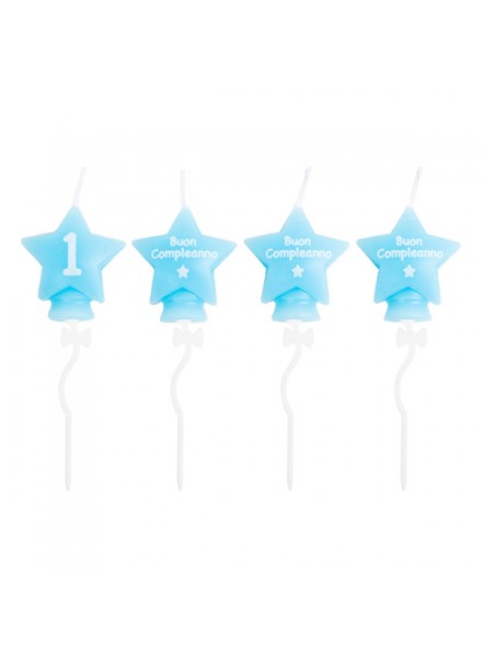 4 candeline cm 7.5 a forma di cuore con pick e fiocco. La candelina cuore con la delicata scritta 1 compleanno e' perfetta per decorare la torta del tuo bambino.