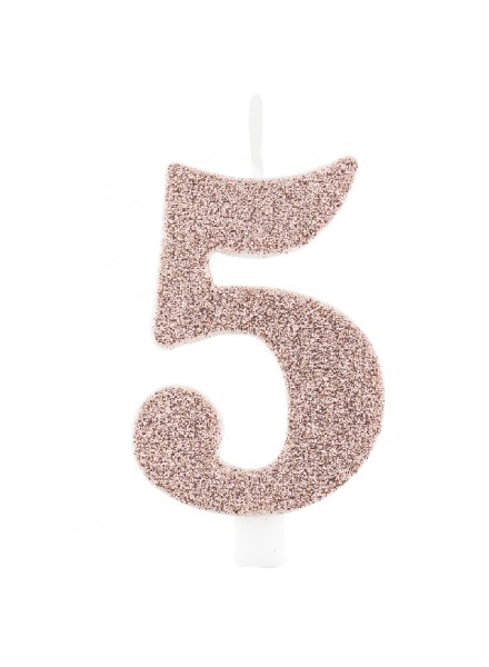 Candelina rose gold glitter numero cinque, altezza cm 9.5. Candelina compleanno con glitter dorati: la scelta giusta per non passare inosservati.