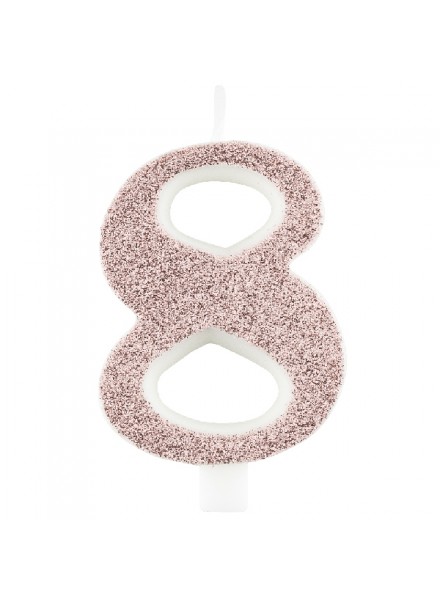 1 candelina cm 9.5 numero 8 Glitter Rose Gold