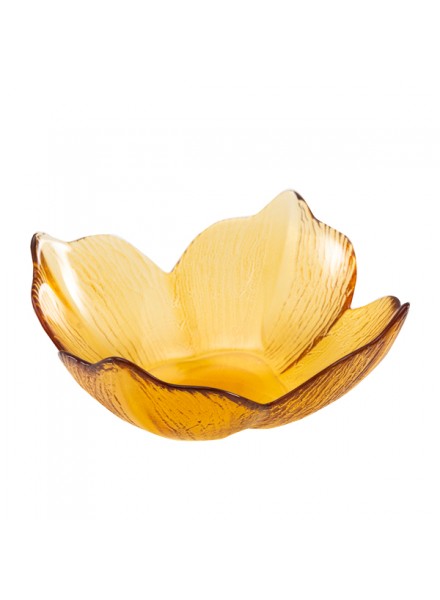 1 bowl in vetro cm 19.5x7 dalla raffinata forma a fiore nella nuance giallo ambra. La flower bowl della linea Lifestyle è stata realizzata con l'originale forma a fiore per rendere romantica e primaverile la tua tavola. Ideale per il candy table di un Baby Shower o di un Battesimo. Da usare in ogni occasione per impreziosire la mise en place e servire dolci, frutta, stuzzichini agli ospiti.