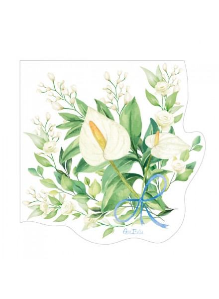 16 tovaglioli sagomati in carta cm 33x33, 3 veli. Rendi romantica la tua tavola con l'originale tovagliolo a forma di bouquet dai delicati toni pastello. Questo tovagliolo della linea Lifestyle e' stato realizzato con l'intento di rendere unica la tua apparecchiatura. I tovaglioli rispettano lâambiente: hanno ottenuto la Certificazione Aticelca e sono quindi riciclabili nella carta.