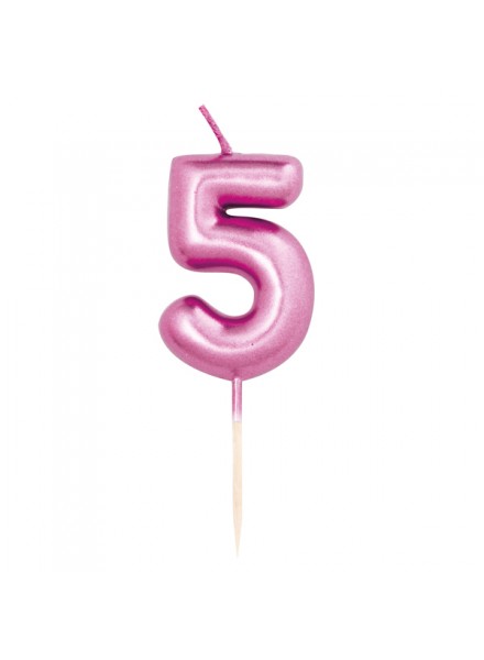 Candelina numero cinque cm 7 metal Fucsia su stecco. Con questa candelina numerale, adatta ad adulti i bambini, farai risplendere la tua torta.