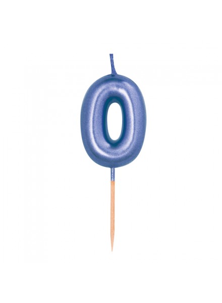 Candelina numero zero cm 7 metal Blu su stecco. Con questa candelina numerale, adatta ad adulti i bambini, farai risplendere la tua torta.