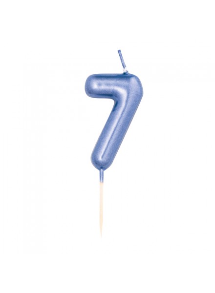 1 candelina numero sette cm 7 Blu metal