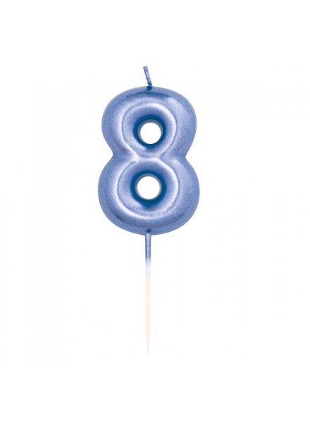 Candelina numero otto cm 7 metal Blu su stecco. Con questa candelina numerale, adatta ad adulti i bambini, farai risplendere la tua torta.