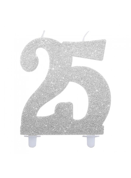 Candela cm 12 Argento Glitter. Perfetta per dare un tocco di eleganza alla tua torta
