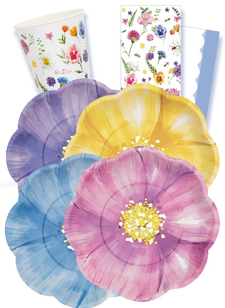 I piatti Fiore sono assortiti nella confezione in 4 colori che si abbinano perfettamente al nostro coordinato Botanical Flowers.