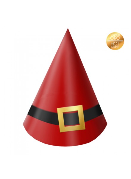 6 cappellini in carta Santa Claus. I cappellini in carta con fibbia dorata sono adatti ad adulti e bambini, per festeggiare con allegria le festivita' natalizie.