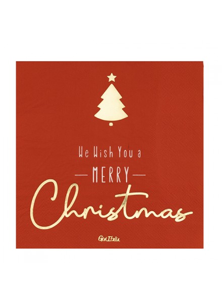 16 tovaglioli in carta cm 33x33. I tovaglioli Christmas Tree sono impreziositi da una delicato disegno oro e bianco su sfondo rosso. I tovaglioli rispettano l'ambiente: hanno ottenuto la Certificazione Aticelca e sono quindi riciclabili nella carta.