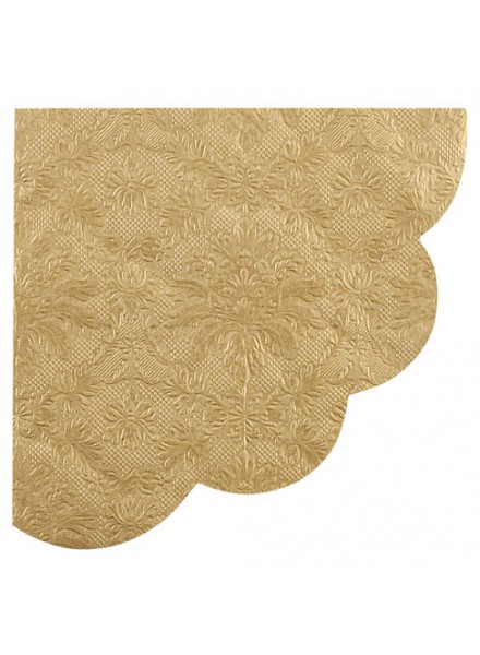 16 tovaglioli in carta con smerlo a fiore 3 veli oro, con decoro in rilievo. Dimensione cm 33x33. Questi tovaglioli monocolore Givi Italia rispettano l'ambiente: sono prodotti con carta FSC, la carta utilizzata proviene da foreste gestite in maniera responsabile.