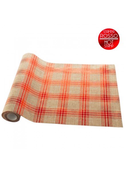 Runner tavola largo 28 cm e lungo 3 metri in juta con righe rosso metal. Ideale per dare un tocco di classe alla tua mise en place.