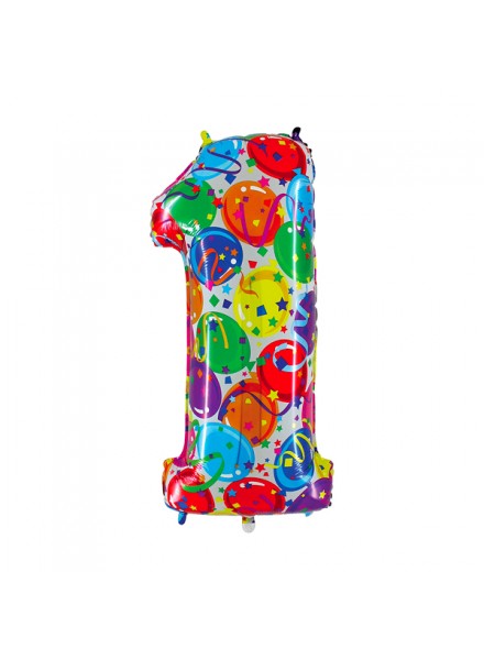 1 pallone numero uno cm 102 Multicolor. Il palloncino in Mylar, gonfiato ad aria o ad elio, e' un accessorio indispensabile per la festa di compleanno.
