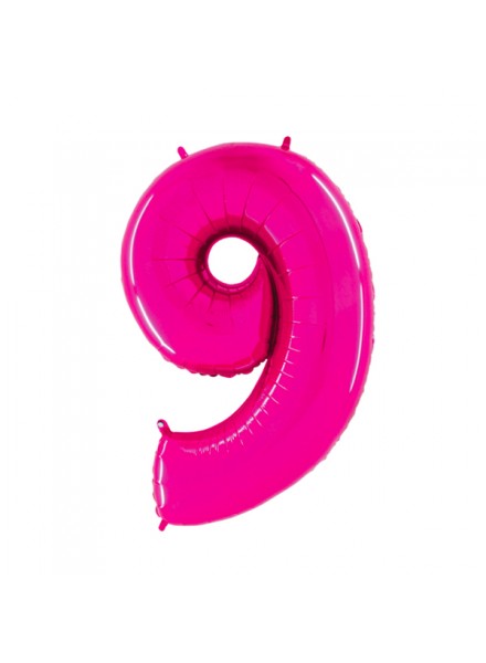 1 pallone numero nove cm 102 Metal Fuxia. Il palloncino in Mylar, gonfiato ad aria o ad elio, e' un accessorio indispensabile per la festa di compleanno.