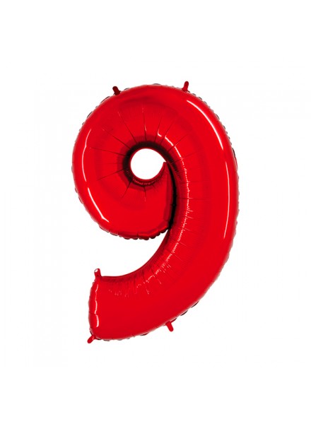 1 pallone numero nove cm 102 Metal Red. Il palloncino in Mylar, gonfiato ad aria o ad elio, e' un accessorio indispensabile per la festa di compleanno.