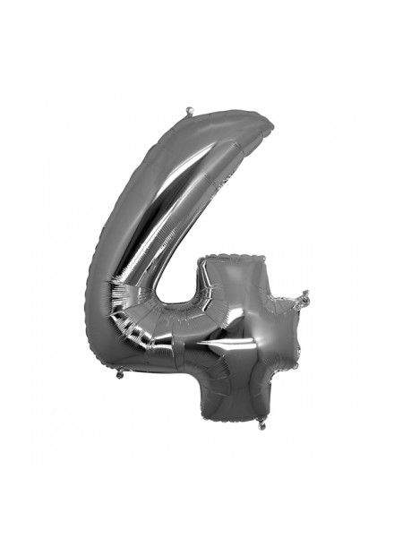 1 pallone numero quattro cm 102 Metal Silver. Il palloncino in Mylar, gonfiato ad aria o ad elio, e' un accessorio indispensabile per la festa di compleanno.