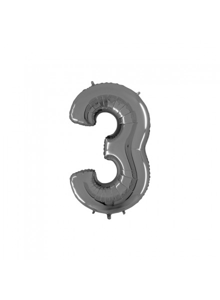 1 pallone numero tre cm 35 Metal Silver. Il palloncino in Mylar, gonfiato ad aria o ad elio, e' un accessorio indispensabile per la festa di compleanno.