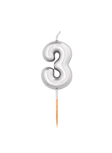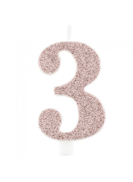 Candelina numero tre rosa perlato con base, altezza 9 cm. Candelina compleanno perfetta per festeggiare non solo i più piccoli, ma anche gli adulti.